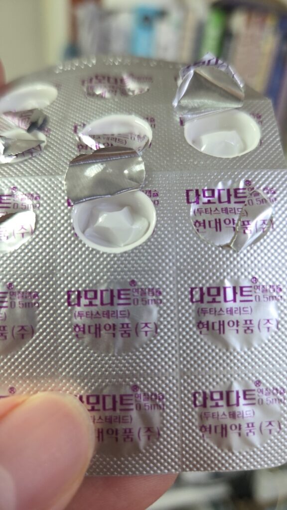 다모다트는 두타스테리드 계열의 약입니다. 남성형 탈모약은 흔히 피나스테리드 계열의 약과 두타스테리드 계열의 약으로 나뉩니다. 피나스테리드는 탈모의 원인으로 알려진 5알파 환원효소의 2형만 억제를 하는 반면에 두타스테리드는 1형과 2형 모두를 억제하는 것으로 알려져 있습니다. 저는 처음에 피나스테리드 약인 프로페시아를 약 1년 정도 복용했습니다. 하지만 크게 효과를 보지는 못했어요. 아마 저에게 맞지 않은 약인 것 같습니다. 그래서 고민을 하다가 두타스테리드 계열의 약인 다모다트를 복용하기 시작했습니다. 기분 탓인지는 모르겠지만 다모다트를 먹고 나서 모발이 좀 굵어지고 예전보다 훨씬 덜 빠진다는 느낌을 받았어요. 그래서 그 이후로는 다모다트를 복용하고 있습니다.